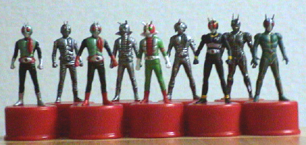 コンプリートすると台が組み合わさるのです。009の髪がヘン以外は気に入っています。 |