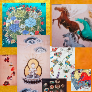 和紙や麻布、木や石など、由緒のある素材を大切に、丹精をこめて丁寧に描き出された四季折々の自然や風物誌... 作品の美しさに惹きつけられます。新しい年を迎える祈りを捧げ... 清々しい心の作品を、ご覧ください。