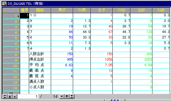 男女別度数処理の例です。
