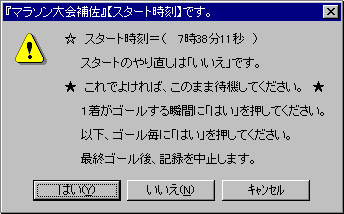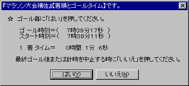 ,"\n\n 最終ゴール後または計時を中止する時に「いいえ」を押してください。"