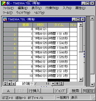 *行訂正 [時刻]=#時間数値(#日時時刻(#日時値),5)