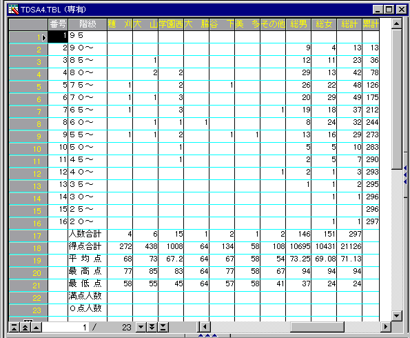 受検中学校単位で処理し、全受検校を一覧表にします。