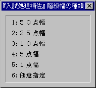 メニュー2 &連続,1,(16,55),#連結(&システム名,”中学校別度数一覧表の内容はどれですか?”)
