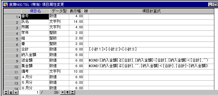 表の項目計算式でおこないます。