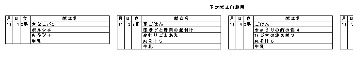 《 予定献立を段組印刷する 》