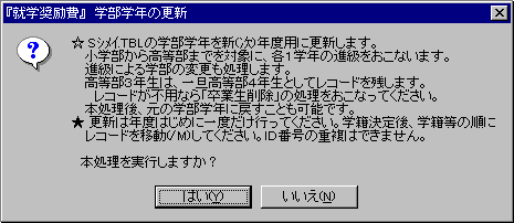 @ 学年等の更新をおこなうメッセージを表示します。