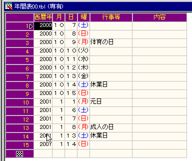 条件 ([行事等]="") 行訂正 [行事等]="休業日"