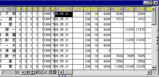 並べ替え {[ID]昇順,[氏名]辞書順,[年]昇順,[月]昇順,[支給日]辞書順}