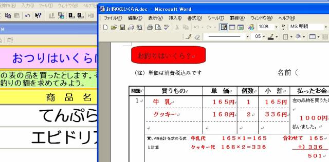 @ フォームを使ったお釣り問題(画面での演習:プロジェクターを利用して授業をおこなっている)