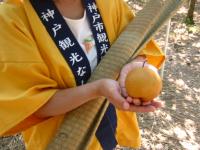受付で入園料を支払うと、プラス チックのナイフと小さいゴミ袋、 それに神戸市観光農園のスタン プラリーの案内書をくれた。 |