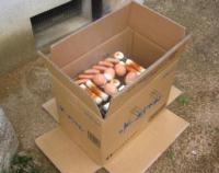 スーパーでダンボールをもらってきた。金網をのせる棚として