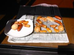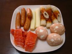| 2006年10月 いつものチーズ、ウインナー、ちくわ、 ゆで卵に加えて、サーモンも。 |