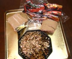 スモークウッドは約6cmの長さ。 これで約80分間の燻製ができる。 |