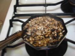 キャラメルの空き缶の蓋を皿とし、チップを 入れて、火が着くくらいに焦がしておく。 |