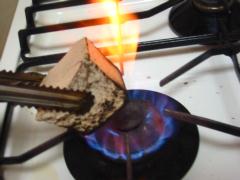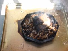 ウッドは直火で一旦着火。炎は収まり、 煙となる。(蚊取り線香の様) これが種火となる。 |