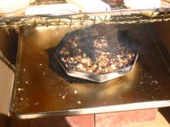 おかきの空き缶の蓋に燃料の入った皿を 乗せる。 |