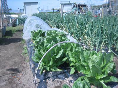 (2019年4月9日撮影) 「ロマリア」というロメインレタスです。 お正月に発芽した種が、約100日ほど で、こんなに大きくなりました。ことし (2019年)は50個以上とれ、半数くらい 出荷しました。右は極早生タマネギで、 4月下旬までに終了しました。このあと に、焼肉レタスを定植し、さらに第二次の サツマイモ用の畝になる予定です。 先輩に教えてもらったのですが、サツマ イモは一次として、4月下旬植え付け、 8月下旬〜9月上旬収穫。二次は、6月 中旬に苗取りし植え付け、10月下旬〜 11月上旬に収穫しています。土手で 焚き火をして、焼き芋を美味しく食して いましたが、この春から規制があり、 楽しみが減りました。 |