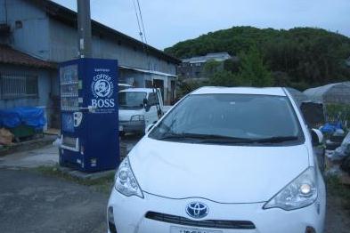 (2019年4月29日撮影) 車はAQUAです。ナンバーは誕生日にして います。紺色の自動販売機が目印になります。 この手前左に平屋の集会所があります。 |