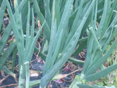 (2019年4月29日撮影) 紅タマネギを、今期は約250本植えて います。1mを超えるようになってきました。 自然に茎が倒れる頃が、収穫時期と 言われています。 |