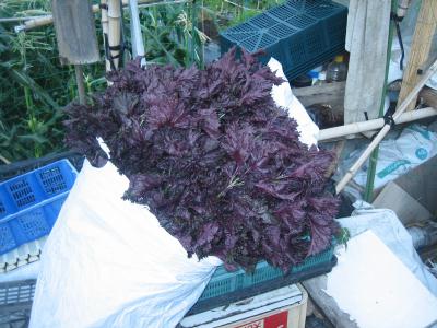 (2019年6月15日撮影) サツマイモの蔓が伸びるまで、 赤しそを混植していました。 梅を漬けるころの需要が多いです。 |