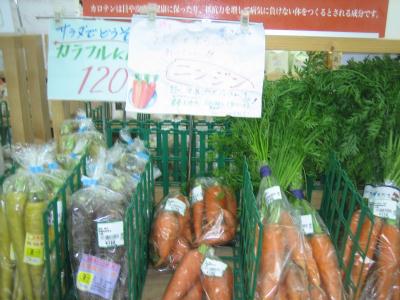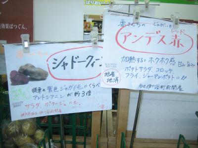 (2019年6月撮影) ポップはすべて自作です。夕食後などに 手書きします。 ジャガイモが写っていませんね。 |