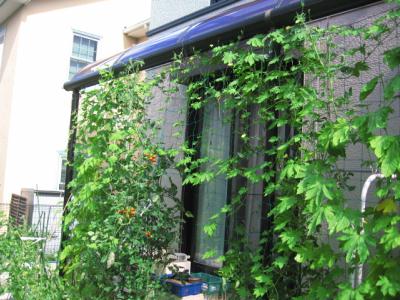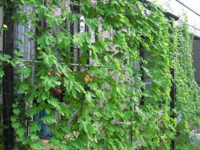毎年、みどりのカーテンとしてゴーヤに お世話になっています。 |