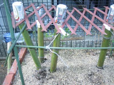 Rの庇の縁を利用して、ネットを張って います。 |