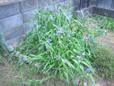 (2020.5.10撮影)ムラサキツユクサ 冬季は、地上部がわからなくなってしまうが、 春を迎えると、ニラのような葉が伸びてくる。 いつの間にか、花芽がつき、午前中に 紫の花を咲かせる。 |