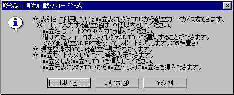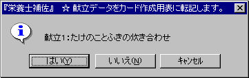 ★ 1)カード作成では、作成したい献立名をコードで入力します。候補とした献立を