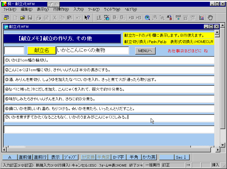 ★ 5)献立メモ表への献立名の挿入では、献立元表の献立名を「単一化選択」して