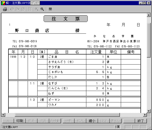 ★ 4)注文票印刷では、注文先表を使って注文先をリストアップしますので、
