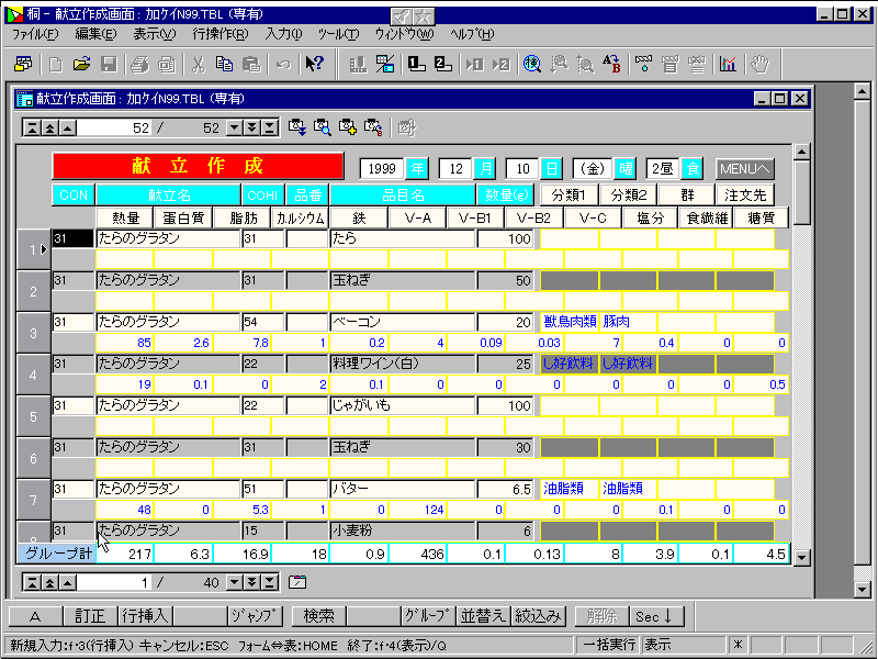 《献立の日・食毎の入力》