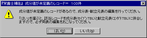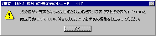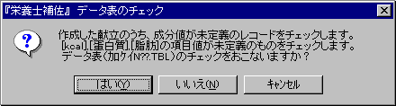 ★ 未定義のデータがあった場合、メニュー7)、8)で編集する必要があります。 なければ他の処理がおこなえます。 END of FILE 《栄養士補佐メニューへ》 《玄関へ》