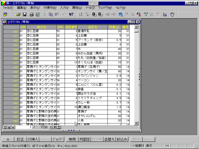 ★ 献立元表です。直接入力します。献立データ作成時などで、「表引き」として使用して います。また、献立カード作成時の元データとして使用します。