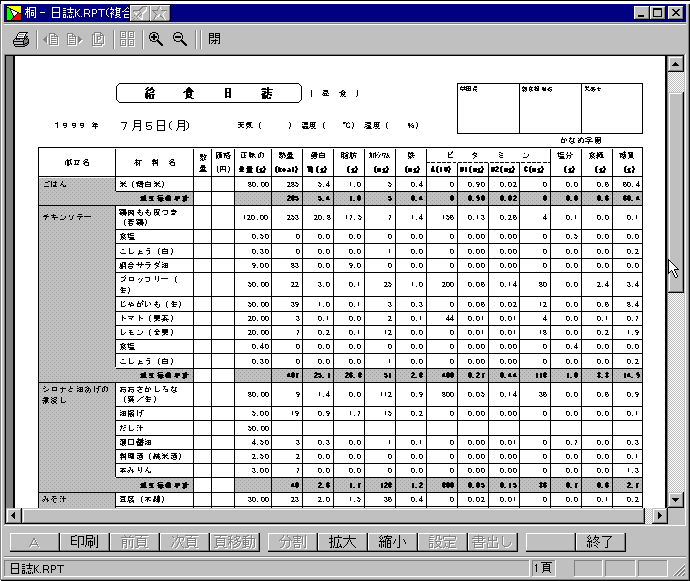 《給食日誌の印刷》