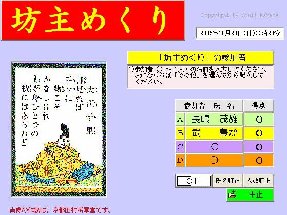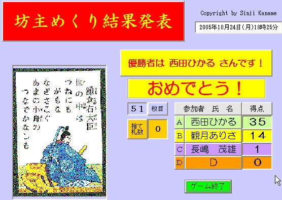 ☆ ルールの説明。参加者数はボタンをクリック。氏名入力(略)後、ゲームを開始。