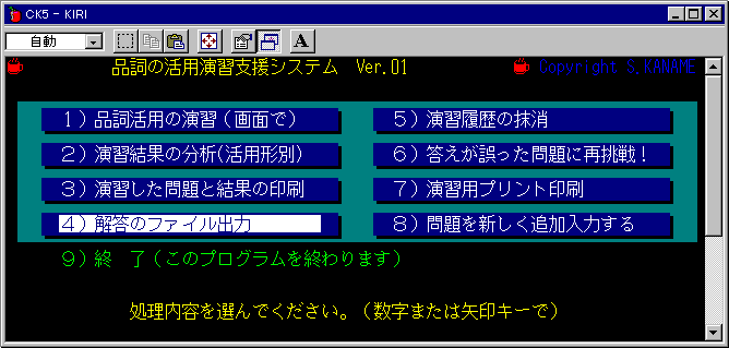 | 『桐』Ver.5による品詞の活用 | 9) 終 了 |