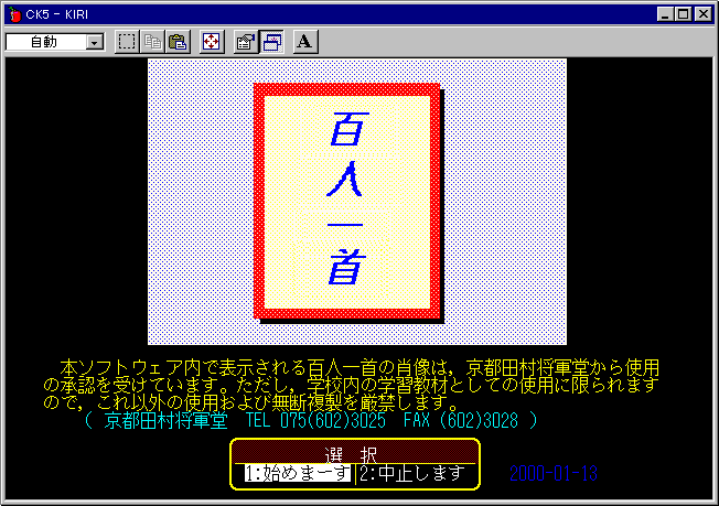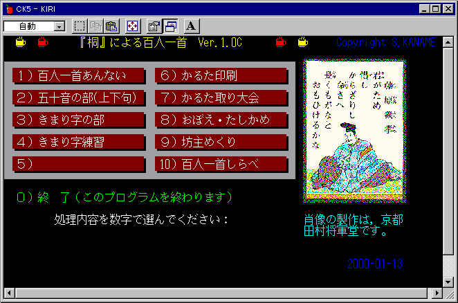 | 『桐』Ver.5による百人一首 | 終 了 |