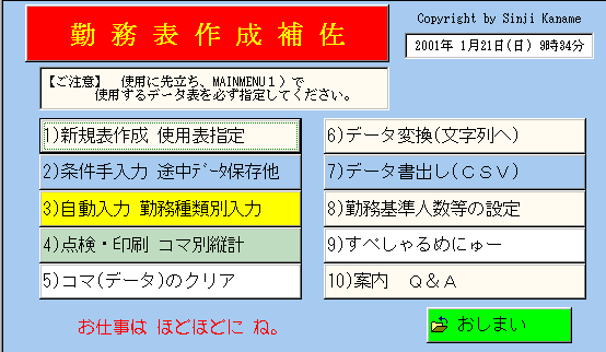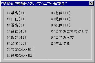 『シフト制勤務表作成補佐』 kinmu.html 《作品へ戻る》 《玄関へ》