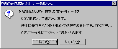 CSVファイルを使ってエクセルの「勤務表」ワークシート(部品集その他を参照)に値だけをコピーしたものです。