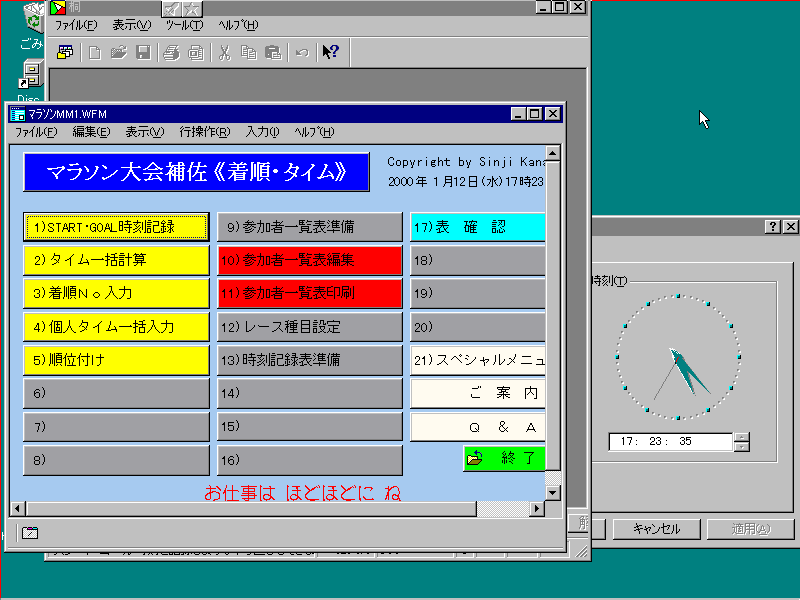 | マラソン大会補佐《着順・タイム》 | 起動初期画面 | 終 了 | |