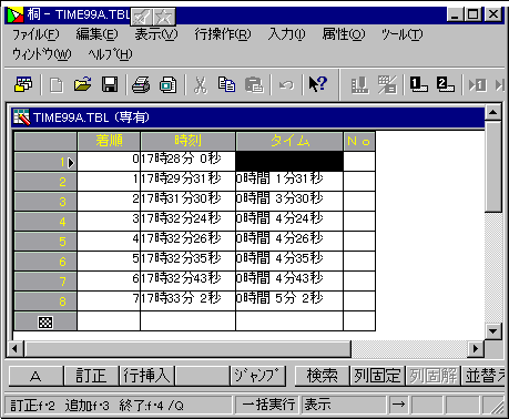 ★ 計時を中止(終了)すると計時データ表を表示します。
