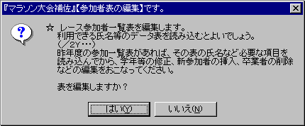 『マラソン大会補佐』メニュー10)timesm10.html 《作品へ戻る》 《玄関へ》 《参加者一覧表編集》