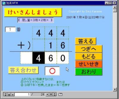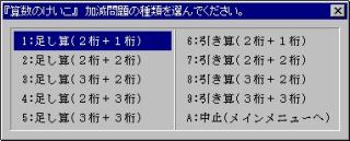☆ メニュー5)足し算 引き算 問題のレベルを選びます。