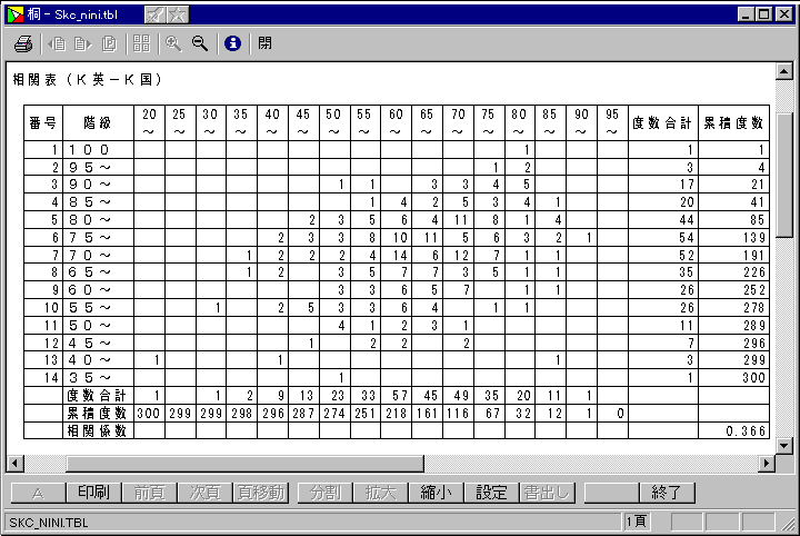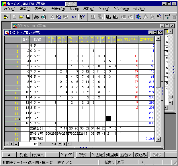 ★ 階級幅などのデータに基づき必要な項目を挿入し、相関表を用意します。
