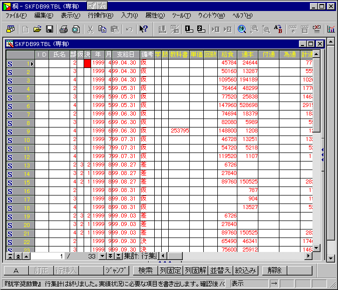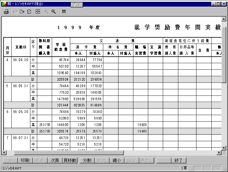 ★ 対象レコードを集計し(下表)、表として書き出します。印刷はレポートを使います。