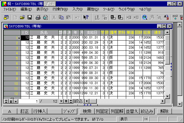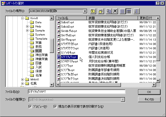 ★ 個人別支給台帳の印刷で、ID番号で選んだ場合の確認。レポートを使って印刷。