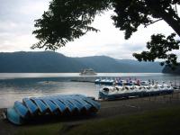 ホテルからすぐ湖岸に出てみると アヒル?が沢山並んでいました。 |