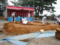 祭りが近いようで、土俵作りが急 ピッチのようでした。 |