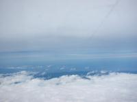 青森空港から秋田市、新潟市、松本 市上空を通過するそうで、雲を下に した北アルプス連峰が覗いていま した。 |